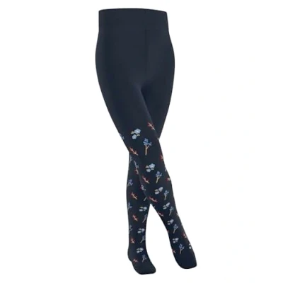 FALKE Unisex Kid's Little Flowers K Ti Cotton Patterned Tights, Blue Space 6116, 5.5 8
