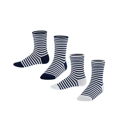 FALKE Unisex Kid's Sporty Stripe 2 Pack Cotton Thin Patterned Multipack Pairs Socks, Blue (Marine 6120), 6 8.5 (pack of 2)