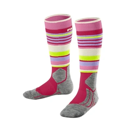 The ski socks made of highly insulating, cosy merino wool and functional material are odour-inhibiting, breathable and keep your children's feet warm when skiing, snowboarding and doing winter sports The special padding on the shin and ankle prevents pressure points; the moisture-wicking 3-layer design in the sole keeps your child's feet dry and blister-free at all times To prevent pressure points and for optimum comfort during winter sports, the ski sock ends above the edge of the boot; for a crease-free fit, we recommend the smaller size if you are in between sizes Special knitting techniques adapted to the anatomical differences of the right and left foot ensure a high comfort, slip-free and wrinkle-free fit, long durability and protect against pressure points The mulesing-free wool and functional material are durable and resistant to wear and tear, making them ideal for use in ski socks that are frequently washed and worn FALKE, a family business founded in 1895, stands for unconditional quality, the highest craftsmanship, innovative and functional products and plastic-free packaging