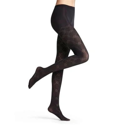 Fashionable tights featuring a modern, graphic Argyle pattern; inspired by british design classics These mid-thick, semi-opaque tights are elegant and suitable for ballerinas, high heels and pumps; with pattern These tights partly cover the skin, have a flat seam in the toe area and are ideal to wear all year round for work, everyday wear, weddings, carnival or ballet To maintain the shape and colour of this article after repeated washings, we recommend a gentle machine wash at 30°C Special and innovative knitting techniques guarantee a fine stitch pattern, a slip-free and wrinkle-free fit, a high wearing comfort, a long durability and a protection against pressure points Article number: 42333 ; sizes available: S, S-M, M, M-L, L, XL, XXL