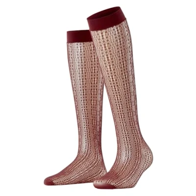 FALKE Women's Crossroads W Kh Sheer Patterned Knee High Socks, Brown Cayenne 5950, OneSize