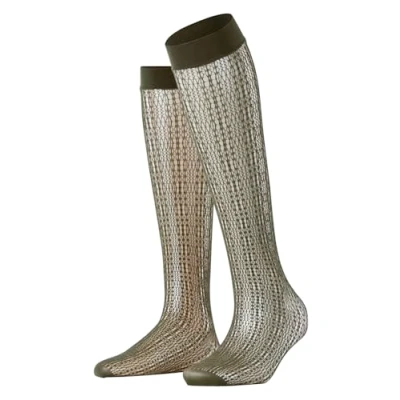 FALKE Women's Crossroads W Kh Sheer Patterned Knee High Socks, Green Artichoke 7436, OneSize