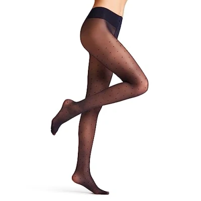 Single pack of sheer tights with polka dots pattern vitalising and actively invigorating the legs; patterned, matt, excellent with a dress or skirt; medium-compression effect of 12-16 mmHg (measured with the MST device from SWISSLASTIC AG) on the ankle Significantly delayed fatigue: compression tights for short journeys, during or after pregnancy and for extreme strain when sitting, standing, walking or for weddings; the compression effect ensures better blood circulation in the foot and supplies the leg with oxygen Figure-shaping tights that prevent swollen, heavy legs - you feel fit and toned all day long and they have a shaping effect on the waist, hips and thighs; excellent shape and colour retention even after repeated washing; machine wash 30°C gentle Special knitting techniques guarantee a excellent fit; the unreinforced soft toe seam and the toe reinforcement prevent laddering and pressure marks; the reinforced heel ensures a wrinkle-free fit Model number for the FALKE women's Dot Vitalize tights: 40662; available in sizes: S (UK 10-12), S-M (UK 12-14), M (UK 14-16), M-L (UK 16-18), L (UK 18-20), XL (UK 22-24) FALKE, a family business founded in 1895, stands on a firm foundation of values: unconditional quality, the highest craftsmanship, modern and innovative products for generations