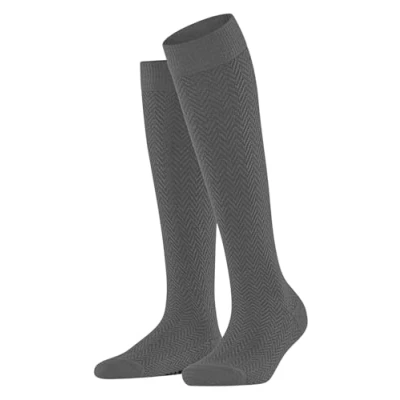 Fashionable knee socks providing pleasant wearing comfort thanks to their soft, warming material composition with sustainable wool; geometric elegance created by a modern herringbone pattern These long socks for women and teenage girls are made of a soft, warm and breathable fabric and are comfortable on the skin; in a mid-calf length and without pattern, classic, plain These knee-highs are ideal in winter for work, everyday wear and for high or ankle boots; high-quality construction with reinforced stress zones and flat seam in the toe area To maintain the shape and colour of this article after repeated washing, we recommend a machine wash on the wool programme Special and innovative gender-specific knitting techniques guarantee a slip-free and a wrinkle-free fit, a high wearing comfort, a longer durability and protect against pressure points Article number: 46673 ; sizes available: 35-38, 39-42