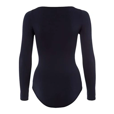 FALKE Women's Fine Cotton Crew Neck W Bo Soft Fabric Longsleeved 1 Piece Shapewear Bodysuit, Blue Marine 6179, XS 34 36