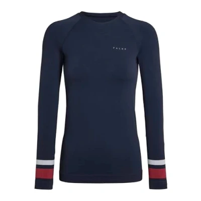 FALKE Women's Maximum Warm Round Neck W L/s Sh Functional Yarn Quick Dry 1 Piece Base Layer Top, Blue Space 6116 Stripe L