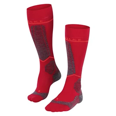 Ski socks made of insulating merino wool with gradual compression for improved blood circulation and faster recovery; the 3-layer construction keeps your feet dry and blister-free Breathable compression ski socks with medium padding to reduce muscle fatigue; the special ski padding on the shin and ankle offers you additional protection To prevent pressure points and for optimum comfort during winter sports, the ski sock ends over the edge of the boot; for a crease-free fit, we recommend the smaller size if you are in between sizes Special knitting techniques adapted to the gender and anatomical differences of the right and left foot ensure a high comfort, a wrinkle-free fit, a long durability and protect against pressure points The mulesing-free wool and functional material are durable and resistant to wear and tear, making them ideal for use in ski socks that are frequently washed and worn FALKE, a family business founded in 1895, stands for unconditional quality, the highest craftsmanship, innovative and functional products with environmentally friendly packaging