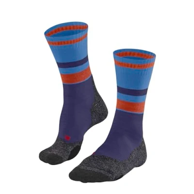 Hiking socks with light compression (14-16 mmHg) to support your ankles and feet, giving you more stability, comfort and a secure fit during your hikes The medium-thickness padding in the areas most subject to wear in these thermal socks offers you a high level of comfort; the flat toe seam prevents pressure points, rubbing and blisters For walking or hiking, these trekking socks offer you secure shoe contact and a high level of cushioning in hiking shoes (categories A-B) We recommend the smaller option if you're between sizes Special knitting techniques adapted to the gender and anatomical differences of the right and left foot ensure a high comfort, a wrinkle-free fit, a long durability and protect against pressure points The high-quality merino wool warms your feet in cold temperatures and cools them in warm temperatures The all-season hiking socks accompany you on your outdoor activities in all weather conditions FALKE, a family business founded in 1895, stands for unconditional quality, the highest craftsmanship, innovative and functional products and plastic-free packaging