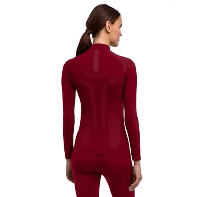 FALKE Women's Warm Turtleneck W L/s Sh Functional Yarn Quick Dry 1 Piece Base Layer Top, Red Merlot 8117, M