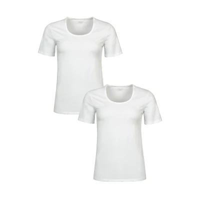 FALKE Women's Daily Comfort 2 Pack Round Neck Underwear Comfortable Undershirt Skin Friendly Short Sleeve with Crew in Multipack Quick Drying Breathable Sustainable Cotton of 2, White (White