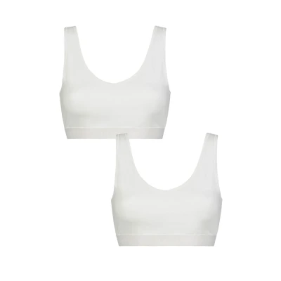 FALKE Women's Daily Comfort W Bra Cotton Breathable Pack of 2 Bustier, White (White 2000), S