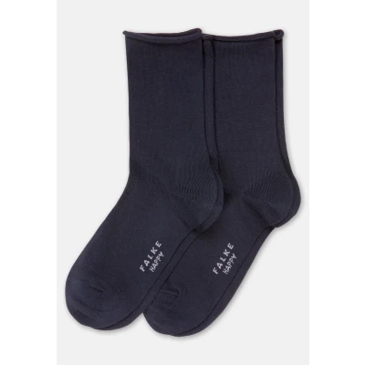 FALKE Women's Happy Double Pack W So Cotton Plain 2 Pairs Socks, Blue Dark Navy 6375, 2.5 5