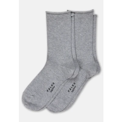 FALKE Women's Happy Double Pack W So Cotton Plain 2 Pairs Socks, Grey Light Melange 3390, 5.5 8
