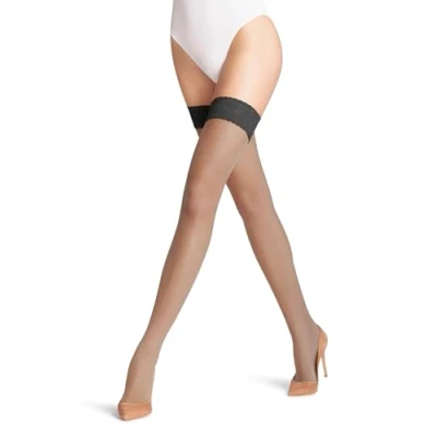 The slightly shimmering, ultra-transparent 12 Den stay-ups give your skin a summery, sleek appearance; choosing the right skin tone leaves your legs looking natural and flawless The fine seam on the toe and the self-adhesive silicone on the decorative lace ensure a comfortable fit, whether for business, leisure or special occasions To ensure a secure hold, please do not apply cream to your legs; this will ensure that the hold-up stockings stay in place without slipping, giving you a carefree wearing experience Special and innovative knitting techniques guarantee a fine stitch pattern, a slip-free and wrinkle-free fit, a high wearing comfort, a long durability and a protection against pressure points Thanks to the transparent 12 denier look, the tear-resistant stay-ups act like make-up on your skin; your legs appear smooth and even in the hold-up stockings at any time of year FALKE, a family business founded in 1895, stands on a firm foundation of values: unconditional quality, the highest craftsmanship, modern and innovative products for generations