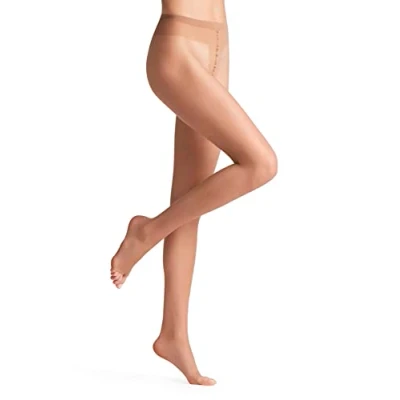 These lightly shimmering, ultra-transparent fine tights in 12 deniers give your skin a summery complexion and look like make-up on your leg; the open toes make them ideal for open-toed shoes like sandals and peep-toes The pressure-free waistband and hygienic gusset ensure the highest wearing comfort; your legs look flawless, smooth and natural thanks to the ultra-transparent tights and the variety of skin tones available Easy to wash: to ensure that the fit is maintained after washing, we recommend the 30°C gentle wash cycle; we also recommend our FALKE wash bag, which provides extra protection for delicate garments Special knitting techniques guarantee a fine stitch pattern; the seamless heel and toeless finish ensure a wrinkle-free fit on your foot and are particularly suitable for open shoes such as sandals Model number for the FALKE women's Shelina Toeless tights: 40029; available in sizes: S (UK 10-12), S-M (UK 12-14), M (UK 14-16), M-L (UK 16-18), L (UK 18-20) FALKE, a family business founded in 1895, stands on a firm foundation of values: unconditional quality, the highest craftsmanship, modern and innovative products for generations