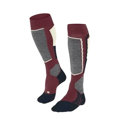 Ski socks made from quick-drying functional material and insulating merino wool for good thermal insulation; the moisture-wicking three-layer construction keeps your feet dry and blister-free Breathable ski socks with a soft, flat seam on the toes and moderate padding for comfort and control; special padding on the shin and ankle provides additional protection To prevent pressure points and for optimum comfort during winter sports, the ski sock ends over the edge of the boot; for a crease-free fit, we recommend the smaller size if you are in between sizes Special knitting techniques adapted to the gender and anatomical differences of the right and left foot ensure a high comfort, a wrinkle-free fit, a long durability and protect against pressure points The mulesing-free wool and functional material are durable and resistant to wear and tear, making them ideal for use in ski socks that are frequently washed and worn FALKE, a family business founded in 1895, stands for unconditional quality, the highest craftsmanship, innovative and functional products and plastic-free packaging