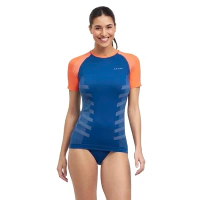FALKE Women's Warm Round Neck W S/s Ts Functional Yarn Quick Dry 1 Piece Base Layer Top, Blue Pond 6598 Trend, M