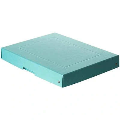 Features: box with lid made of high-quality cardboard (bookbinding cardboard), riveted, with labelling field and handle recess Format: DIN A4, height: 40 mm Puristic, without plastic, without film FSC and vegan certified (guaranteed animal glue-free). Made in Germany Colour: blue