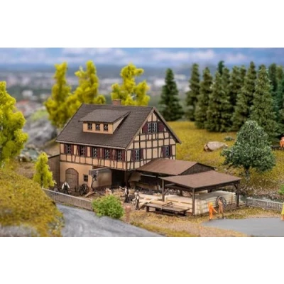 The smell of freshly cut wood and sawdust, the powerful sound of a stream together with the even rattling of the water wheel sweep across the old sawmill with its loving half-timbered elements and red shutters. A small dog house and all sorts of wooden elements complete the miniature model and you can almost imagine the hardworking miniature workers at work. A perfect opportunity to breathe some historical detail into the model building., Manufacturer: Faller