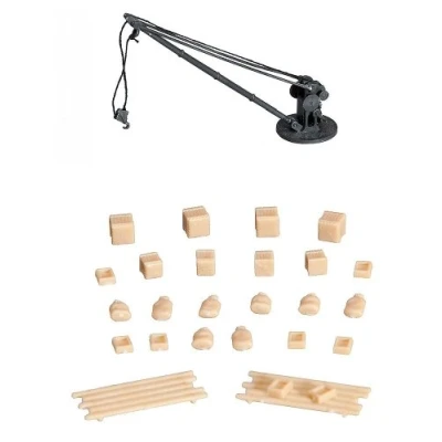 Faller - Loading crane with freight ( 4104090221768) comes from Faller. Category - Spoorweg Landschap, Number of pieces: , Difficulty Level: 2, Minimum age years, Type product: Buildings, Subtype: , Scale: N - 1:160 N, Assembly time (hours), Railroad Buildings, Colour - , Dimensions -50x14x38, Manufacturer: FALLER