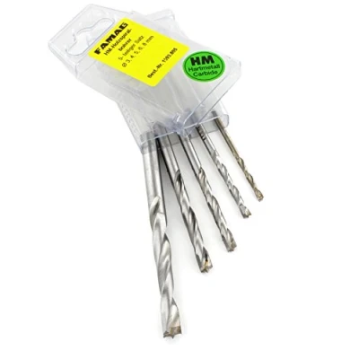 Robust wood twist drill bits made of carbide, which have been specially developed for the toughest conditions Suitable for hardwoods (European and exotic), woods with hard coatings, coated and uncoated chipboard, hard plastics, laminate and similar demanding materials 5-piece set with diameters: 3 mm, 4 mm, 5 mm, 6 mm and 8 mm Spiral shape N for improved chip removal, reduced friction and high wear resistance Centring point, 2 main cutting edges, 2 tapers, cylindrical shaft, Manufacturer: FAMAG