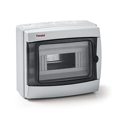 SPECIFICATIONS: Acqua cabinet | IP65 tightness | 8 elements | 217x235x105mm | White IP65 STANQUIDITY: This product is perfect for installations where we must guarantee high levels of water protection. BEST OPTION: Designed to withstand wet or dusty environments, our cabinets are easy to install and integrate into any environment and also allow easy door opening and closing. VARIETY FAMATEL: Our category of enclosures consists of a range of built-in and surface cabinets from 4 to 42 modules and with different IPs according to the needs of the installation. RECOMMENDATIONS: If you do not know how to install it, we advise you to contact a certified electrician, Weight: 1.763698096 Pounds, Manufacturer: Famatel
