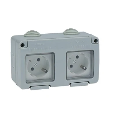 FAMATEL Double Socket for Installation Garden Series IP55 Child Lock This is Waterproof Easy to Install Product Aluminium Grey