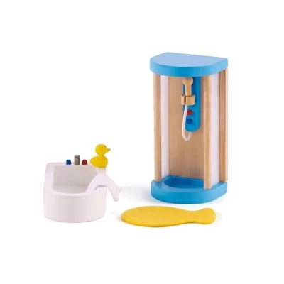 7-PIECE SET: This wooden family bathroom set comes with a shower, bathtub and towel, bathmat, sink with a mirror, a toilet, and a yellow rubber ducky. For an even more immersive play experience, the sink door and toilet lid open and close. COMPLETE THEIR DOLLHOUSE: This family bathroom playset is an ideal addition to your child’s dollhouse. It fits perfectly into Hape’s All Season Dollhouse, or you can use it to customise your child’s existing dollhouse. AN EYE FOR DESIGN: This bathroom lets little interior designers mix and match their favourite furniture and home accessories to create a unique space that’s all their own. Imaginative role play develops their creativity and storytelling abilities, as well as their self-confidence. DECORATE WITH FRIENDS: Little homeowners can use this bathroom set to decorate their dollhouse with friends. Engaging in cooperative role play can help to develop important skills, like sharing, teamwork, turn-taking, and how to use expressive language. CREATIVE THINKING: Arranging and organising furniture in dollhouses helps children to understand important cognitive functions like spatial reasoning, which lays the foundation for understanding more complex concepts., Manufacturer: Hape