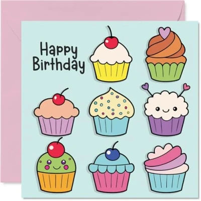 Family Birthday Card Cupcakes Happy for from Colleague Friends, 145mm Fairy Cake Baking Bday Greeting Cards