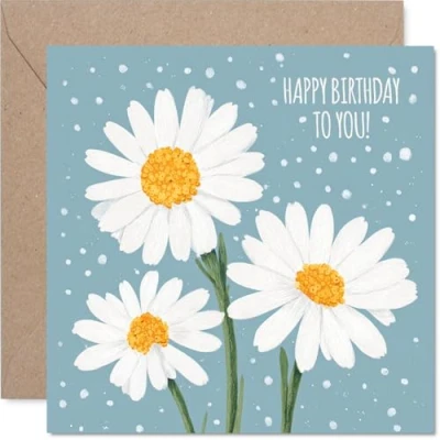 Family Birthday Card Daisies Happy for from Colleague Friends, 145mm Bday Greeting Cards