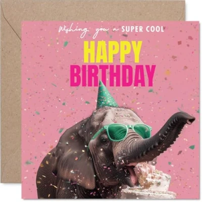 Family Birthday Card Elephantastic Happy for from Colleague Friends, 145mm funny elephant Bday Greeting Cards