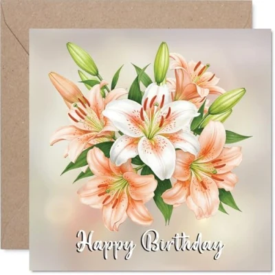 Family Birthday Card Floral Flowers Happy for from Colleague Friends, 145mm Lilies Bday Greeting Cards