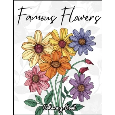 Famous Flowers ; Adult Coloring Book for Women: Beautiful Flower Garden Patters and Floral Botanical Prints. Easy Nature Plant Designs to Color Relaxation