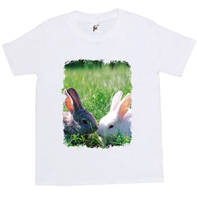 Fancy A Snuggle Grey & White Rabbits On Grass Kids Boy Girl Cotton Short Sleeve T Shirt Size 3 4 Years