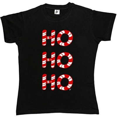 Fancy A Snuggle HO Christmas Candy Canes Womens Boyfriend Fit T Shirt Black Medium