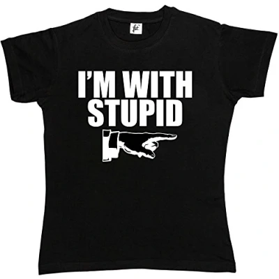 Fancy A Snuggle I'm with Stupid Funny Retro Womens Boyfriend Fit T Shirt Black Medium
