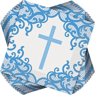 Fancy Blue Cross Luncheon Napkins (16cm) Sophisticated, Soft & Vibrant Party Perfect for Events Home Gatherings 16ct
