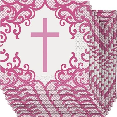 Fancy Pink Cross Luncheon Napkins (16cm) Sophisticated, Soft & Vibrant Party Perfect for Events Home Gatherings 16ct