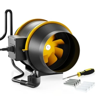 ✅HIGH PERFORMANCE - This in-line Extractor fan has a built-in two-speed controller for adjusting airflow. The airflow is up to 530 m³/h. Ball bearings ensure that the duct fan operates at a low noise level of 31 dB. Compared to the generally noisier EC exhaust duct fans, this inline fan offers value for money in the long term. ✅ROBUST & DURABLE: The housing of the inline bathroom fan is made of high-strength ABS material, which offers the advantages of corrosion resistance, long service life and safety. Unlike metal extractor fans, which rust over time. The 150mm quiet duct fan has also successfully passed the drop test, which in turn ensures structural stability. The copper NSK double ball bearing motor ensures high efficiency and a long MTBF of up to 50,000 hours. ✅IEC-STECKER & MODULAR DESIGN - The FanGoFast Inline extractor fan is equipped with an IEC interface that supports all 220 V plugs for your convenience. Removable ends with locking screws for quick disassembly and easy installation. ✅LOW NOISE: The in-line extractor fan uses a 100% pure copper double ball bearing motor to ensure quiet operation and is equipped with 7 fan blades for more stable operation of the in-line extractor fan. ✅CUSTOMER-FRIENDLY SERVICE - Every exhaust fan undergoes strict quality control before it is delivered. We also have a professional customer service team to take care of your needs. Please do not hesitate to contact us if you have any questions about our inline fan. We offer 18 months after-sales service., Manufacturer: FanGoFast