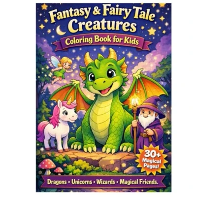 Fantasy and Fairy Tale Creatures Coloring Book for Kids: Dragons Unicorns Wizards Magical Ages 6 to 12