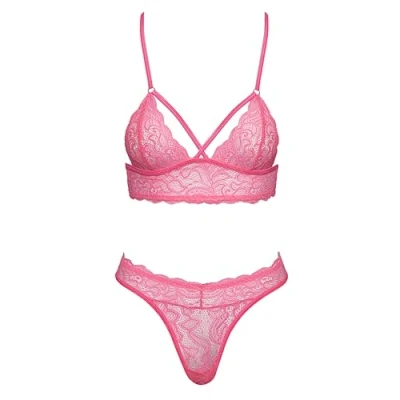 Wireless halterneck bra and thong in a set Delicate lace in an eye-catching colour Lace insert at the back Adjustable back strap lingerie for women, lingerie for women hot, erotic lingerie set, women erotic lingerie sets, sexy lingerie for women, erotic lingerie set for women