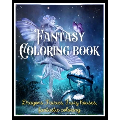 Fantasy coloring book. Dragons, fairies, fairy houses, fantastic coloring.: Adult book magical land. Enchanted world