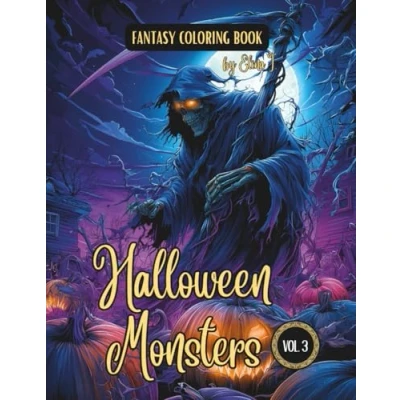 Fantasy Coloring Book Halloween Monsters Vol. 3: For Adults and Teens Black Line Grayscale Images of Night Creatures