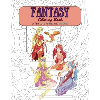 Fantasy Coloring Book with Elves, Fairies and Unicorns