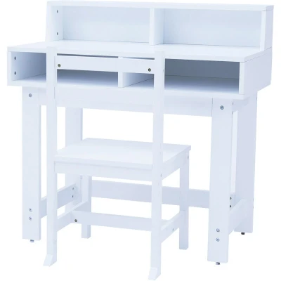 General description Fantasy Fields by Teamson Kids presents a charming white wooden writing desk paired with a matching chair, ideal for at-home studying and crafting. This set provides a perfect space for hours of reading, writing, and creative activities. The desk features a clean, modern design that seamlessly fits into any children's bedroom or playroom decor. Technical specifications Desk dimensions: L81 x W44.5 x H82.4 cm Chair dimensions: L35 x W37.5 x H69.6 cm Recommended age: 3+ Compatibility and accessories Two topside storage compartments for notepads, school supplies, and more Two hidden compartments under the desk for books and electronics Top shelf for showcasing decor Installation Easy to assemble with step-by-step assembly instructions included Usage Perfect for reading, writing, studying, or drawing Can be used for home-schooling or homework Other information Constructed from sturdy and eco-friendly wood for durability Easy-to-clean surfaces for quick maintenance