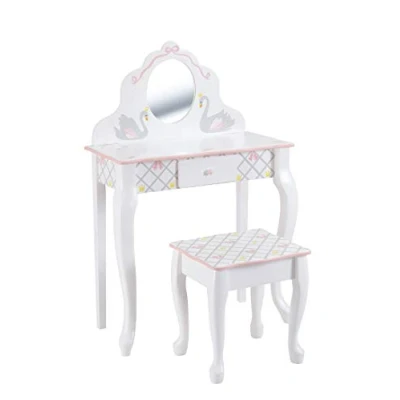 Fantasy Fields By Teamson Swan Lake Girls Wooden Vanity Stool Kids Dress Up TD 12890A