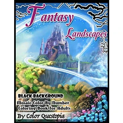 Fantasy Landscapes BLACK BACKGROUND Mosaic Color By Numbers Coloring Book For Adults: A Magical Extreme Adult Number of Detailed Hidden Nature, Secret Gardens, And Fairytale Cities