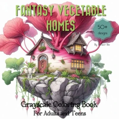 Fantasy Vegetable Homes grayscale coloring Book: Featuring Whimsical Houses with Veggies and Cute Animals on a Floating Island Suitable for Teens ... (Fantasy book)