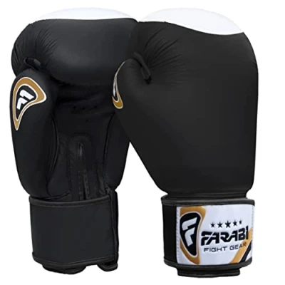 Farabi Boxing Gloves Real Leather Target Series (Black, 12 oz)