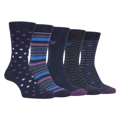 Farah 5 Pack Mens Thin Breathable Classic Patterned Soft Top Office Cotton Dress Socks (6 11 uk, CS192NVYPUR (Polka Dot))